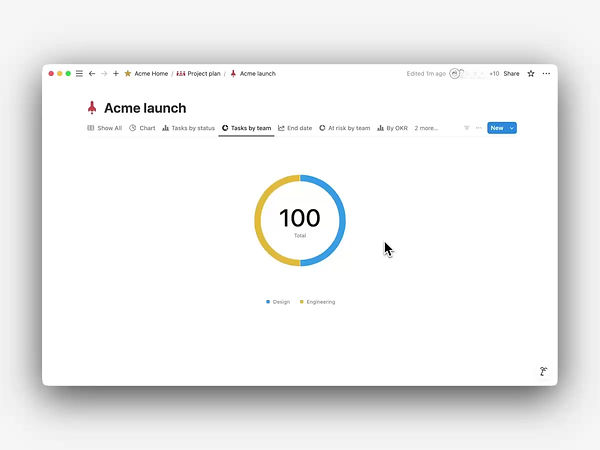 Sayfanızdan ayrılmadan veritabanları (proje izleyicileriniz, ekip belgeleriniz, yol haritalarınız—Notion'da tuttuğunuz her şey) arasında hızla geçiş yapın. Customize layout Sayfanın en üstüne tıklayın, Tabbed altında öğesini seçin Page settings ve veritabanlarınızı başlığın altındaki sekmelere ekleyin.